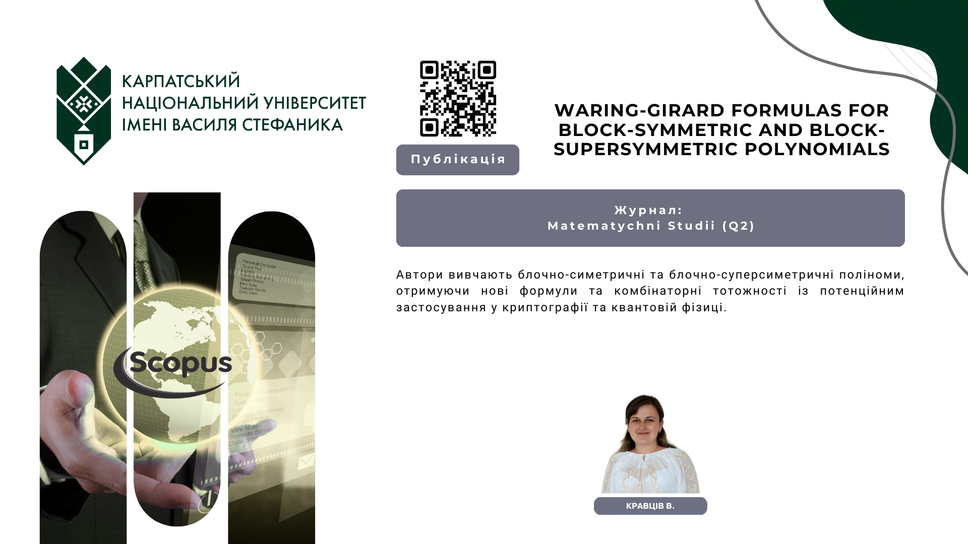 Автори вивчають блочно-симетричні та блочно-суперсиметричні поліноми, отримуючи нові формули та комбінаторні тотожності із потенційним застосування у криптографії та квантовій фізиці.