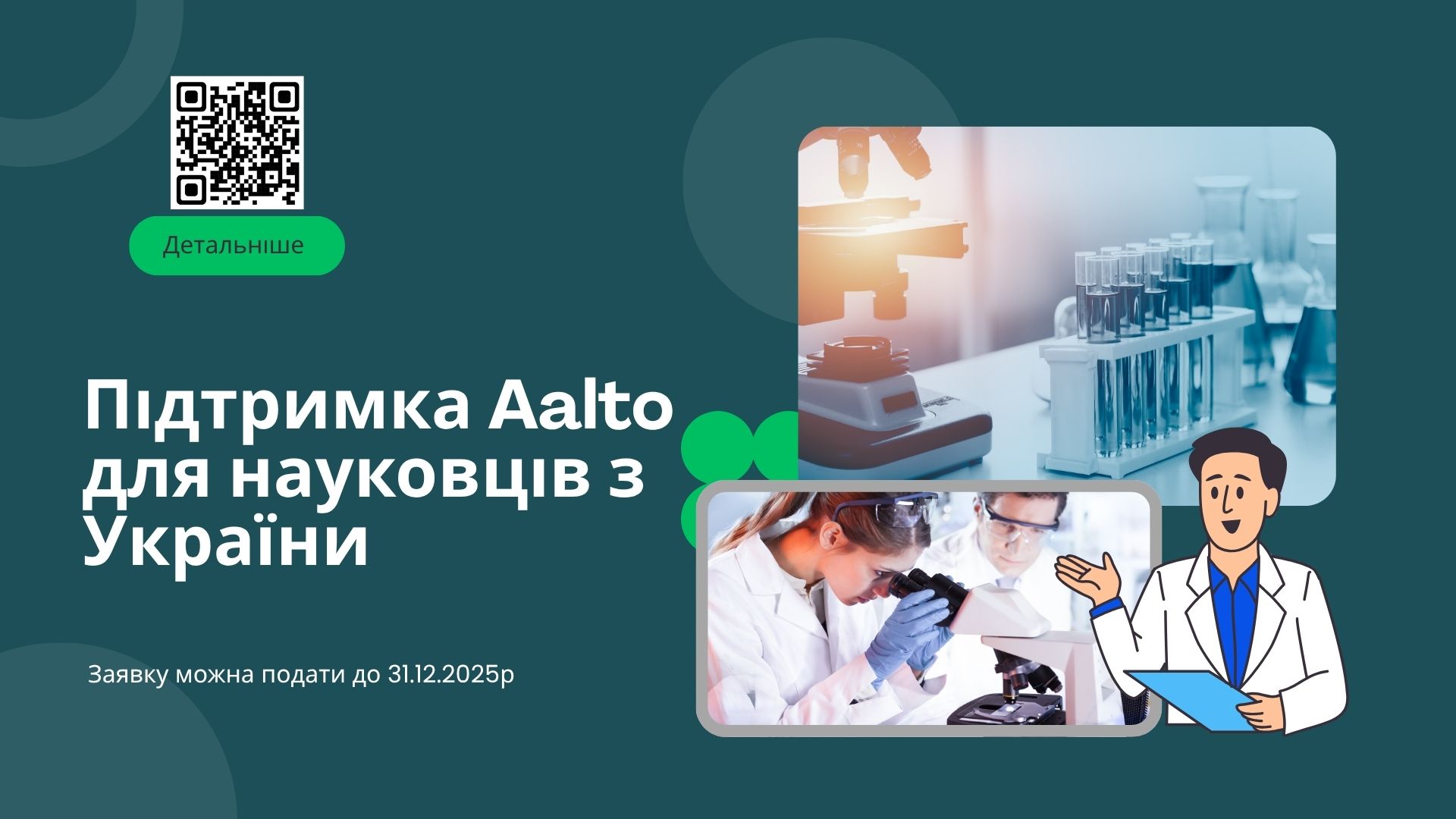 Учасники зможуть продовжити дослідження у співпраці з науковими групами Aalto, отримати доступ до сучасних лабораторій і долучитися до міжнародної академічної спільноти.
