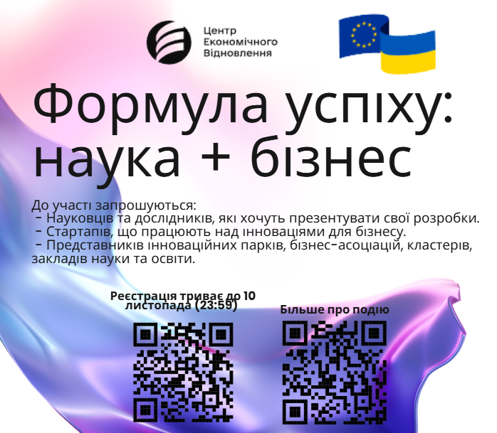 Запрошуємо науковців, дослідників і стартапи Карпатського національного університету імені Василя Стефаника долучитися до національного матчмейкінг-івенту “Формула успіху: наука + бізнес”, що відбудеться 4 грудня у Львівській політехніці.